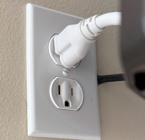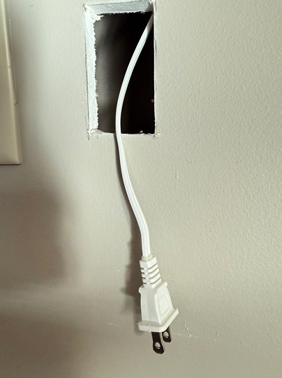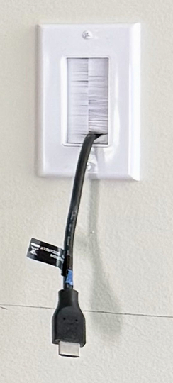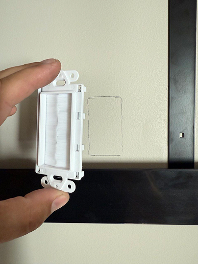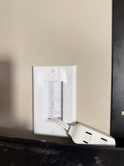 - Run an extension cord and cables through, then cover with brush wall plates.