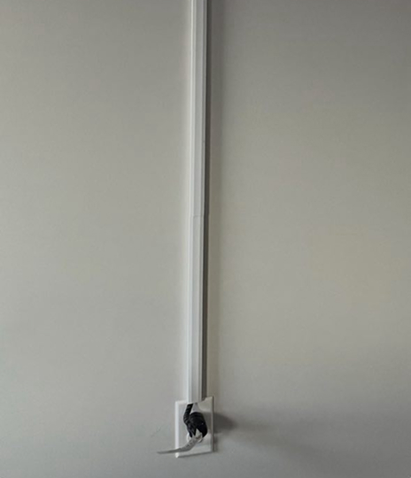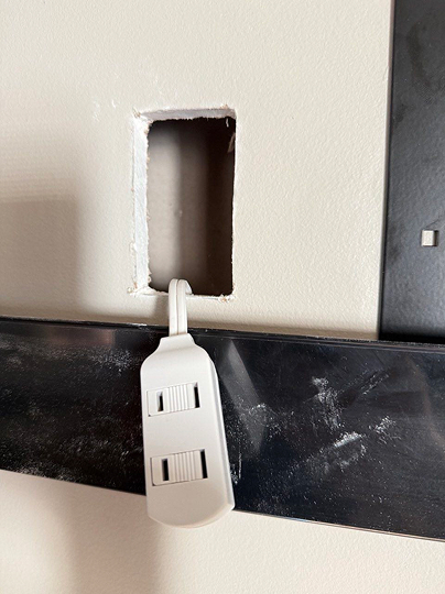 *For hidden wires we cut two openings — one behind the TV and another near the power outlet — to neatly hide the power cable inside the wall. To complete the look, we install sleek white cover plates for a clean and seamless finish.