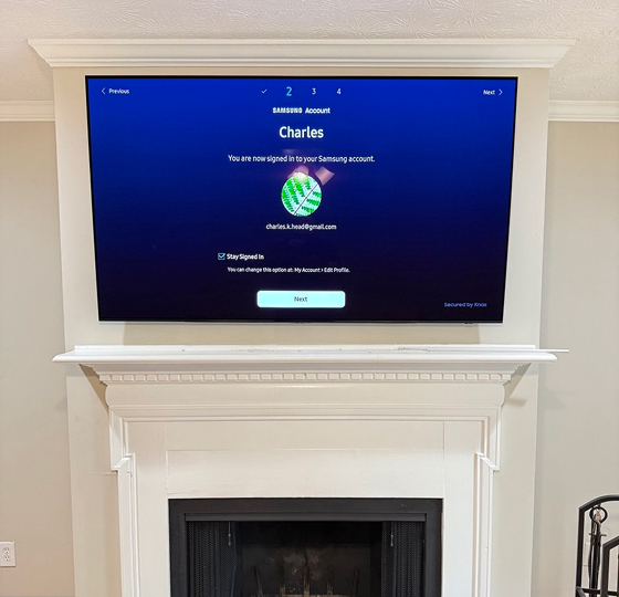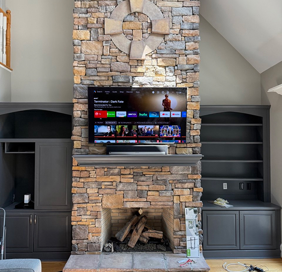 We mount your TV safely, securely, and at the perfect viewing angle — using premium mounts, including manual and motorized mantle mounts.