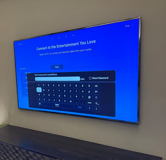 We show up on time, wear shoe covers, protect your floors, and wipe down your screen before we leave. No trash, no dust, no stress — just perfect results.