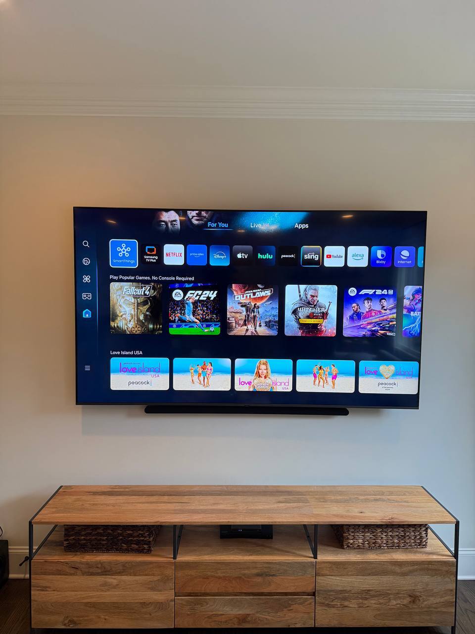 - Mounting and setup of a soundbar or speakers